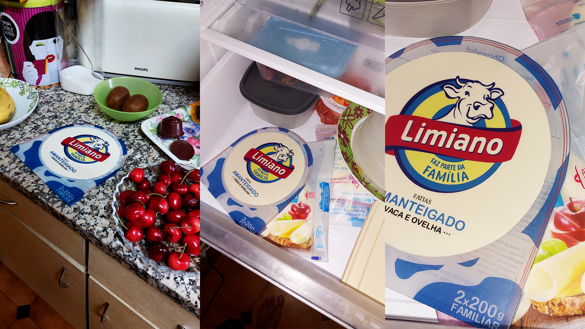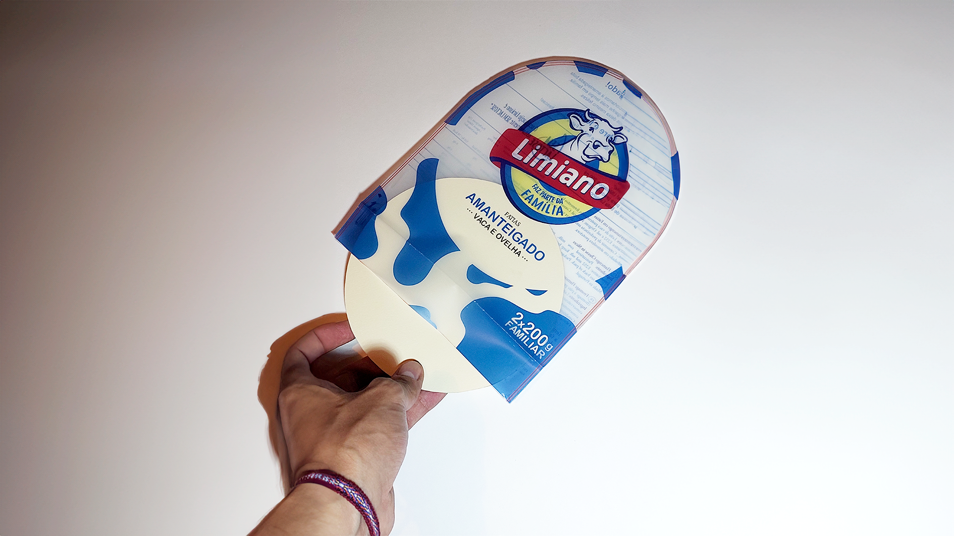 Considerando a proposta apresentada, minha primeira observação foi a ausência de embalagens redondas para o queijo Limiano. Diante disso, optei por abordar essa temática, desenvolvendo uma embalagem circular que se adequasse de maneira otimizada à forma do queijo. No que tange ao design gráfico, optei por utilizar manchas como elemento visual, representando as características distintivas das vacas responsáveis pela produção do queijo Limiano.